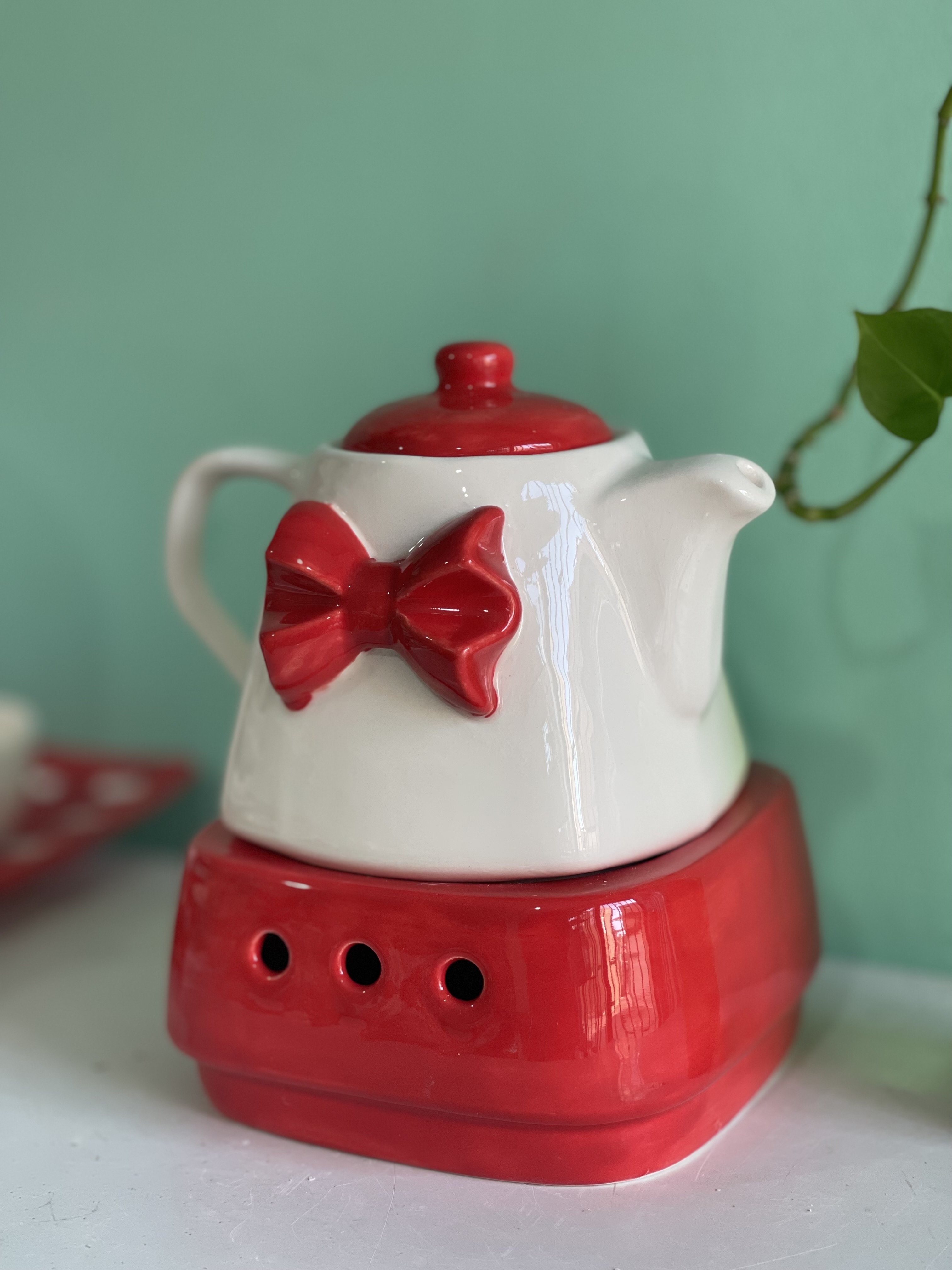 قوری و وارمر پاپیون قرمز جنس سرامیک دستساز