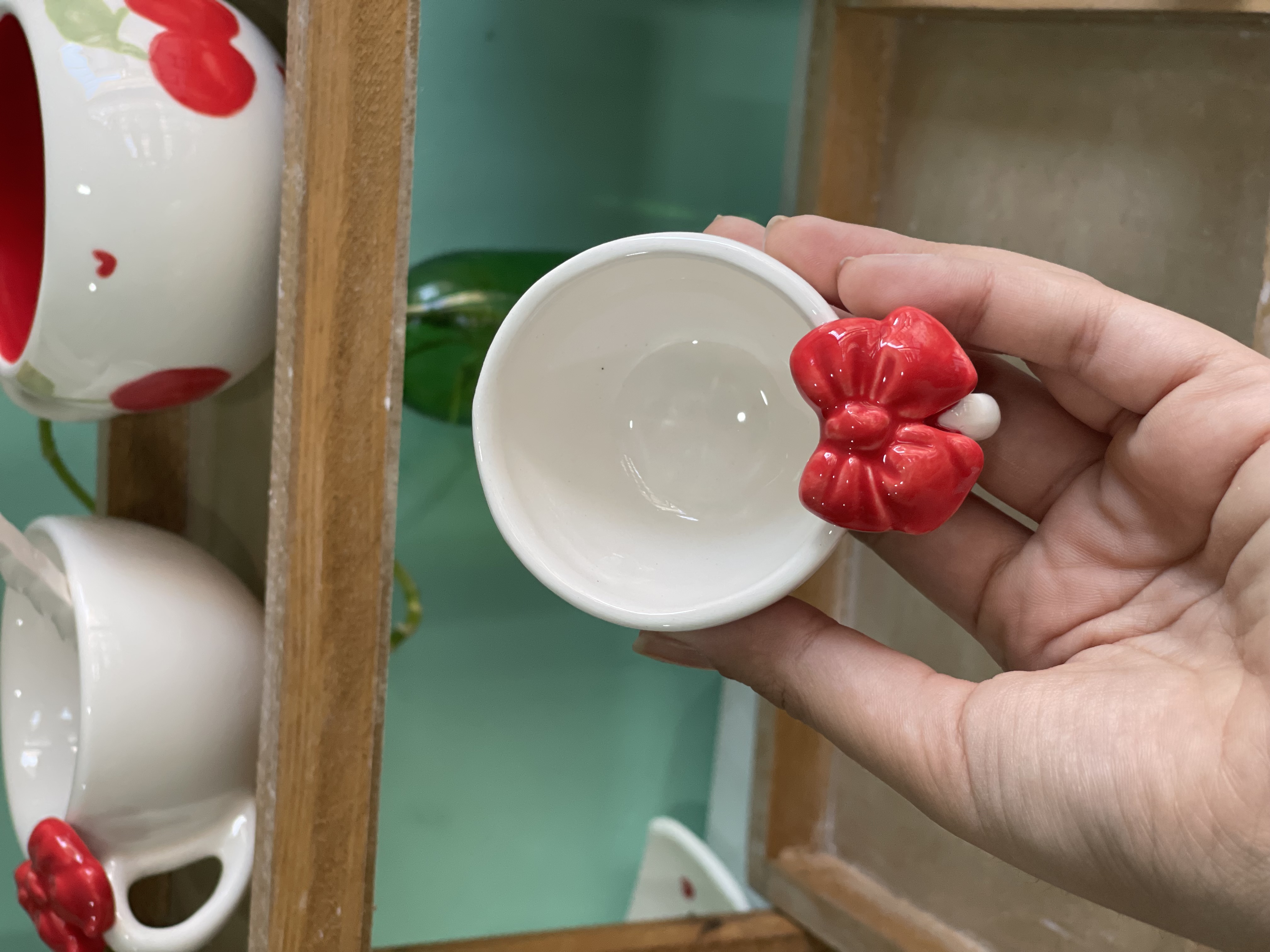 فنجان اسپرسو تک پاپیون قرمز جنس سرامیک دستساز