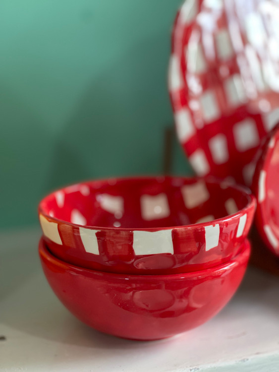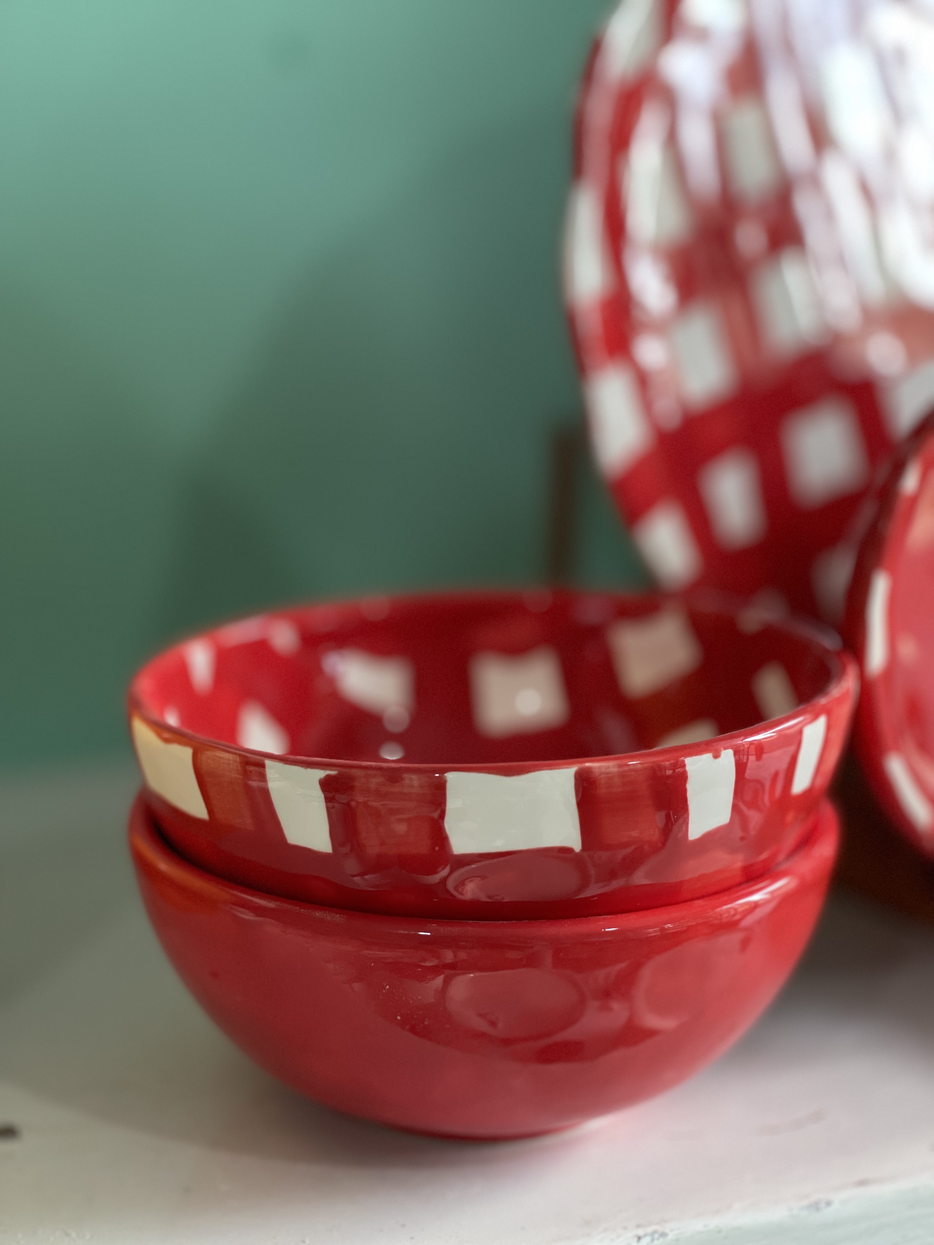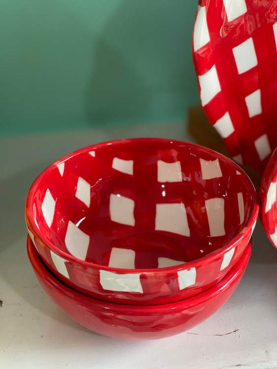 کاسه 15سانت آبگوشت چهارخونه قرمز سرامیک دستساز