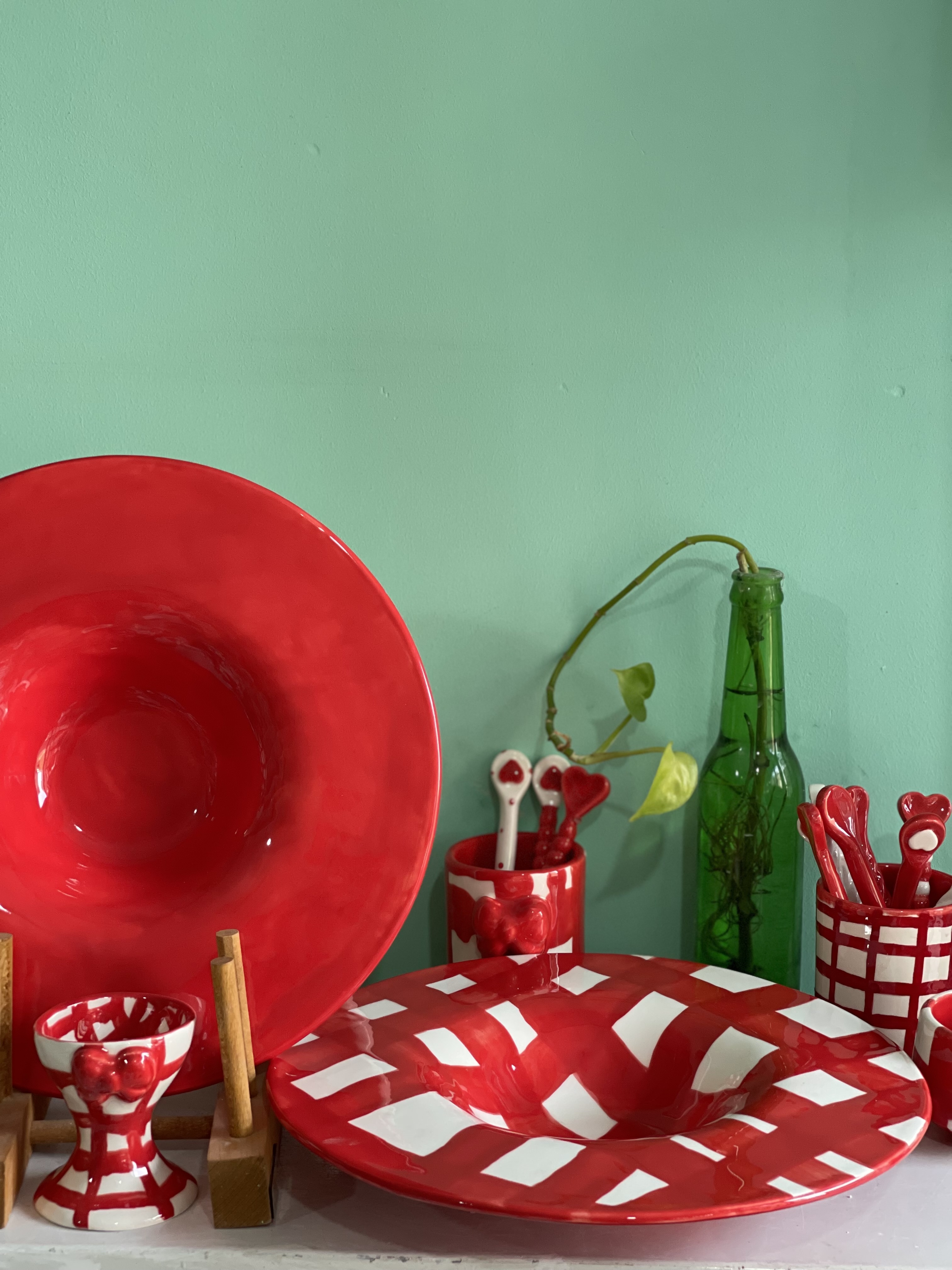 دستهبندی: سرویس صبحانه و غذاخوریبرچسبها : سرویس_جهیزیه، پاستاخوری، سرویس آشپزخونه، چهارخونه قرمز، سرامیک_دستساز، بشقاب سرامیکی