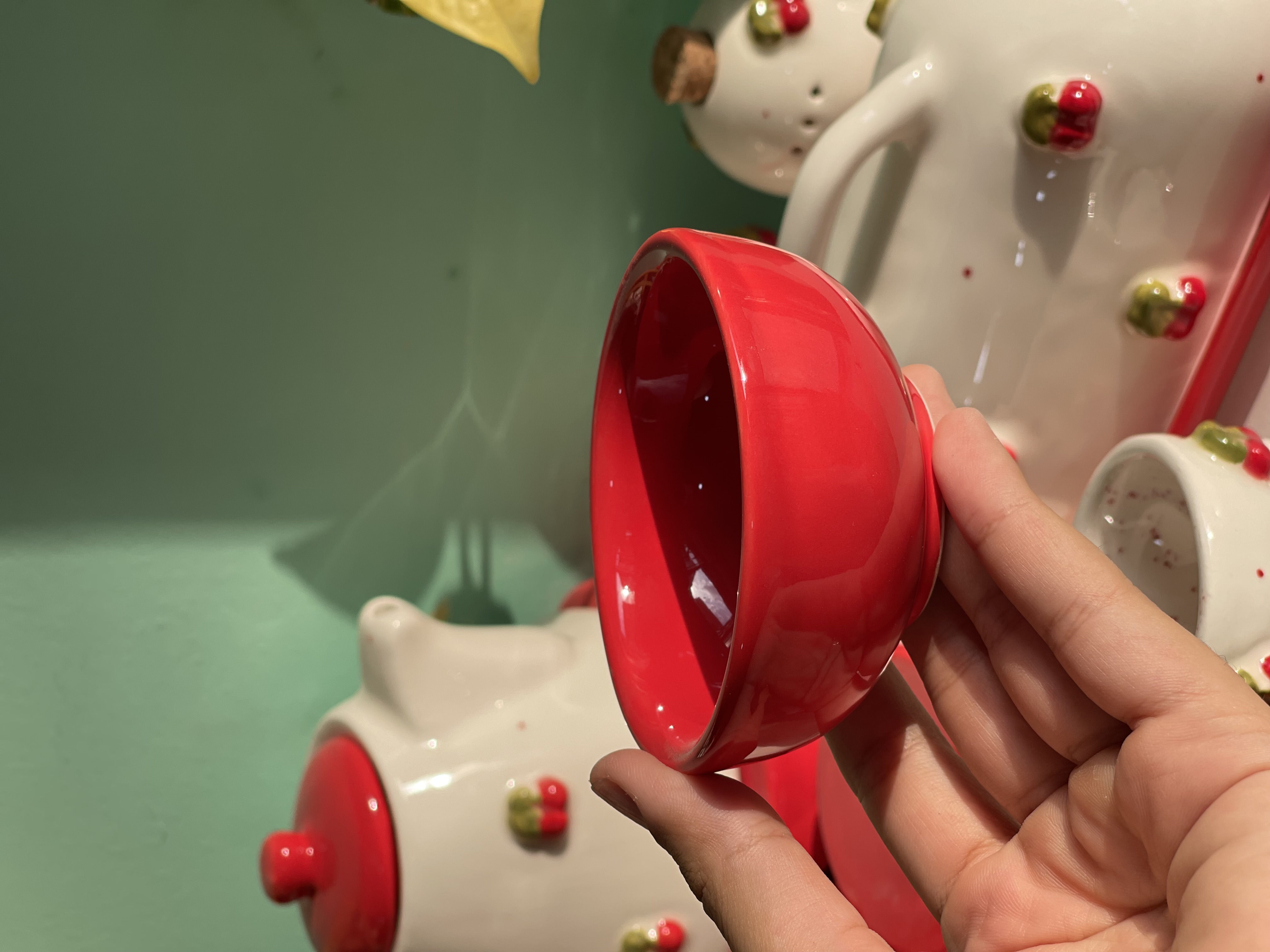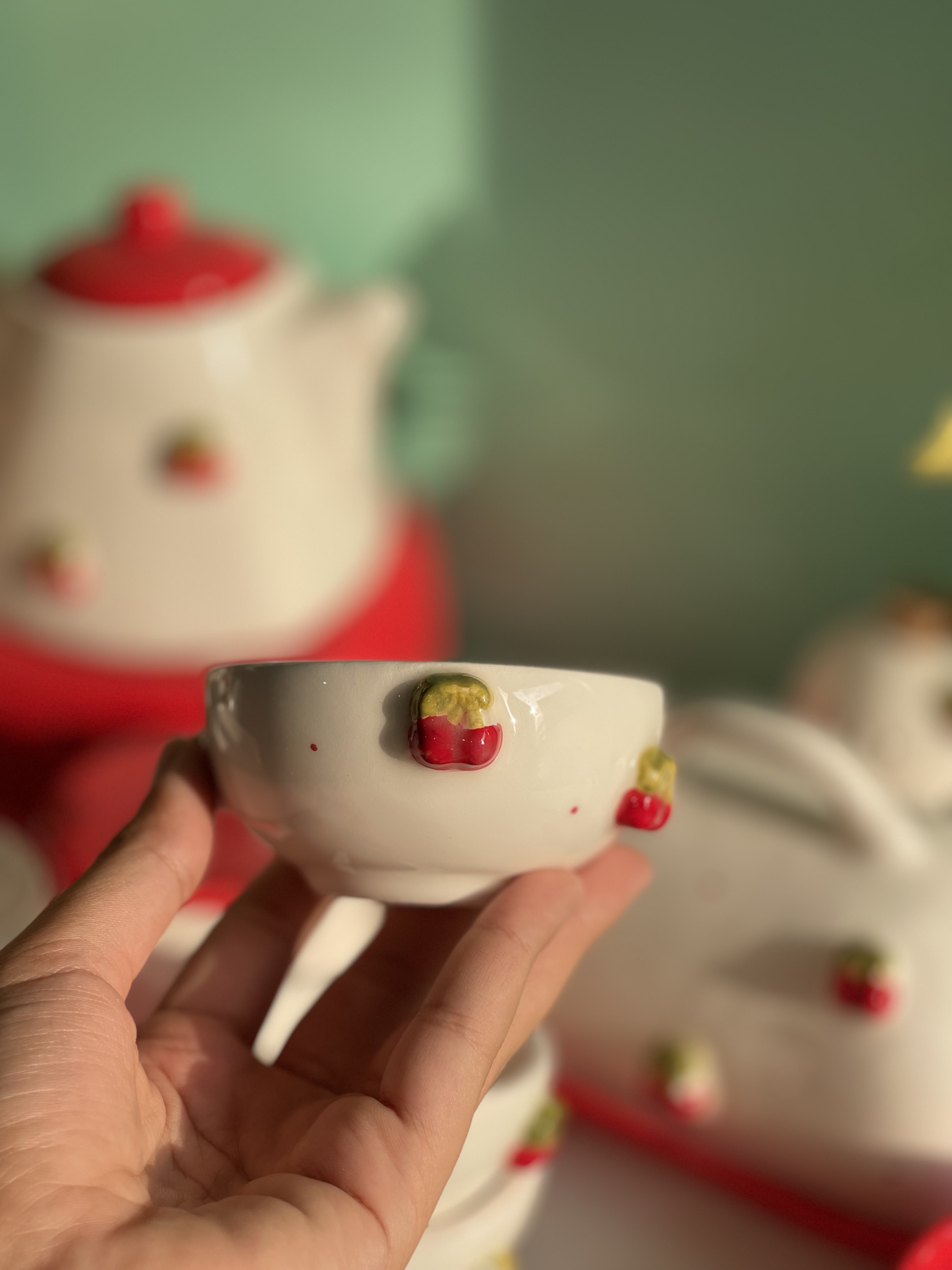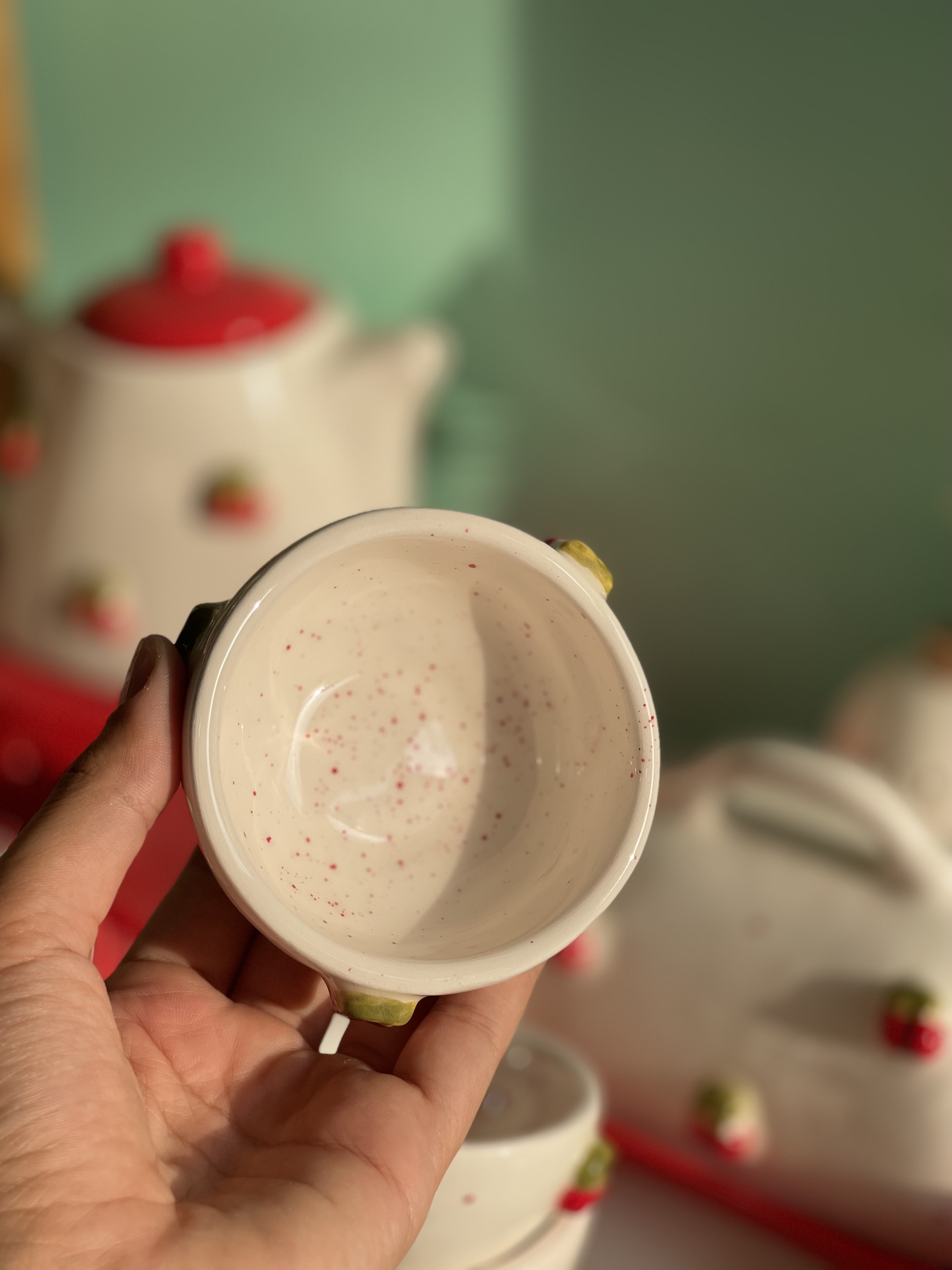 کاسه پیاله ماستخوری قطر 9 قرمز گیلاسی جنس سرامیک دستساز