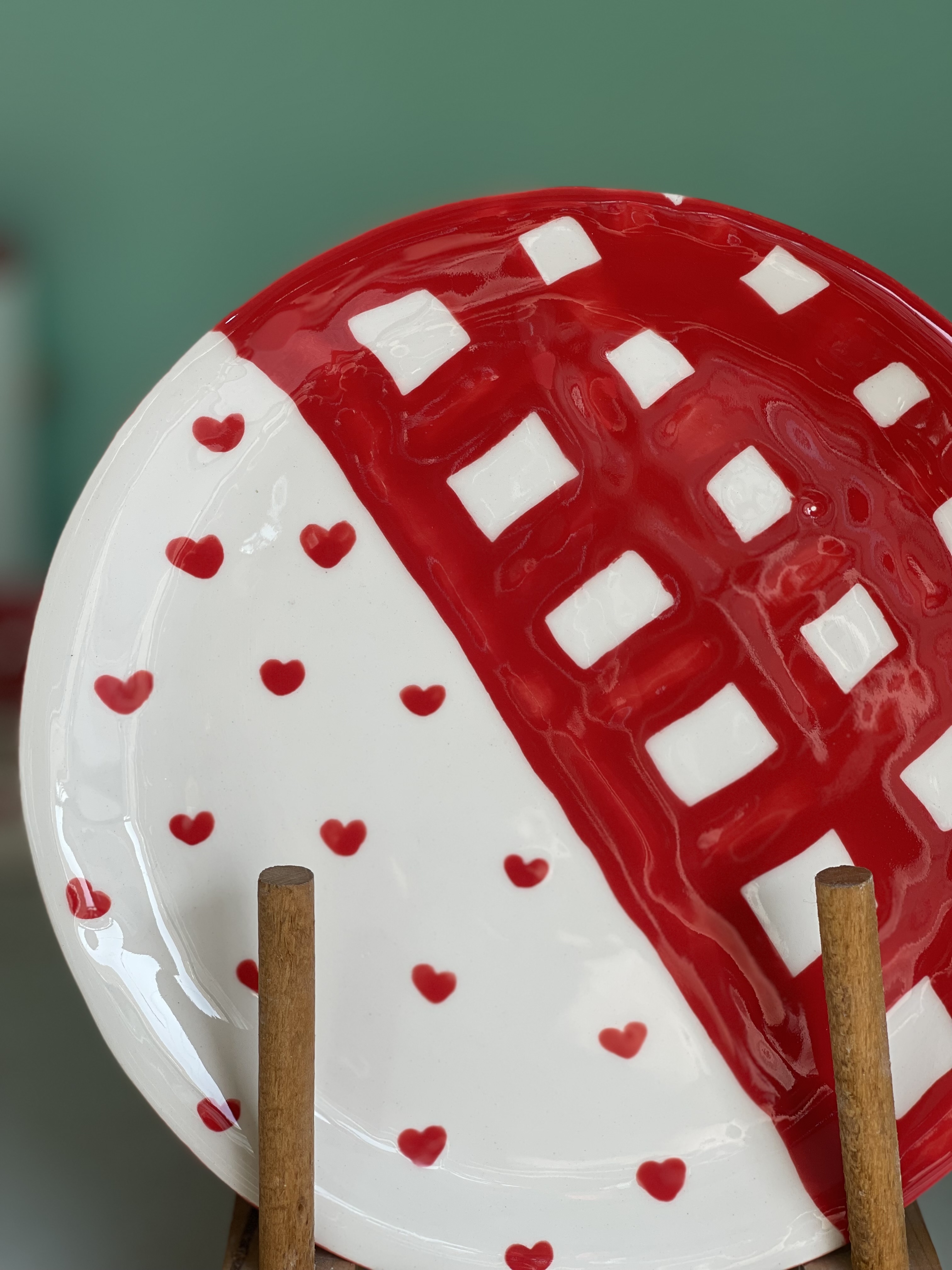 دستهبندی: سرویس صبحانه و غذاخوریبرچسبها : بشقاب سرامیکی، سرامیک_دستساز، پیشدستی، سرویس آشپزخونه، چهارخونه قرمز، بشقاب20سانت