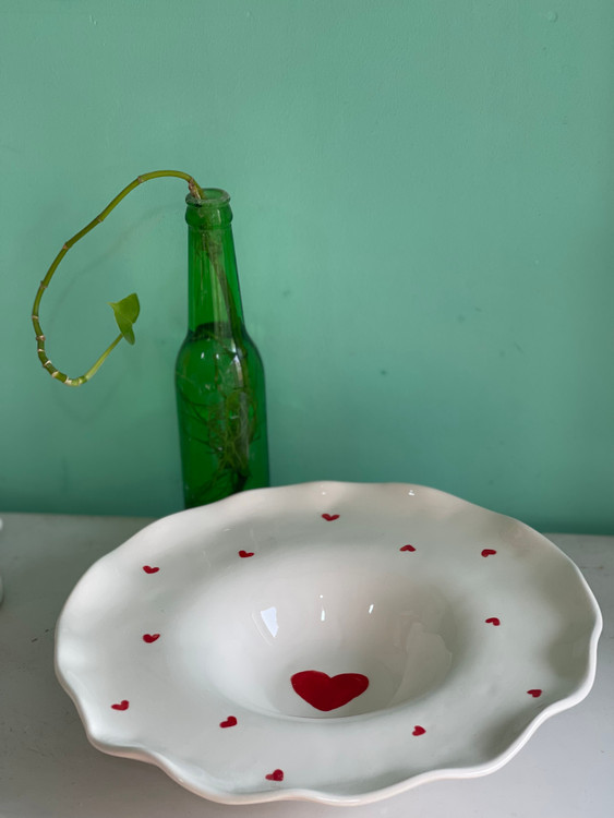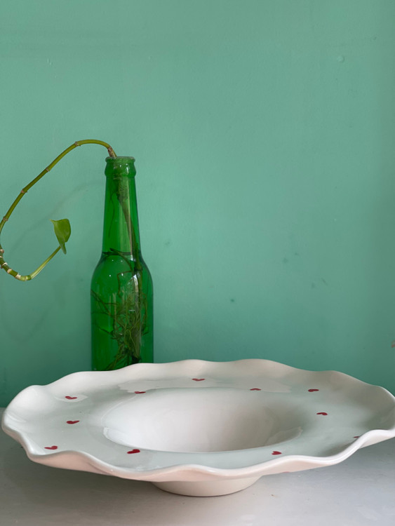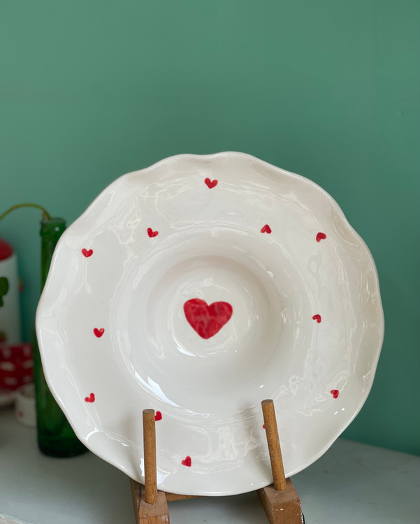 بشقاب پاستاخوری 31سانت لبه چین قلبی جنس سرامیک دستساز
