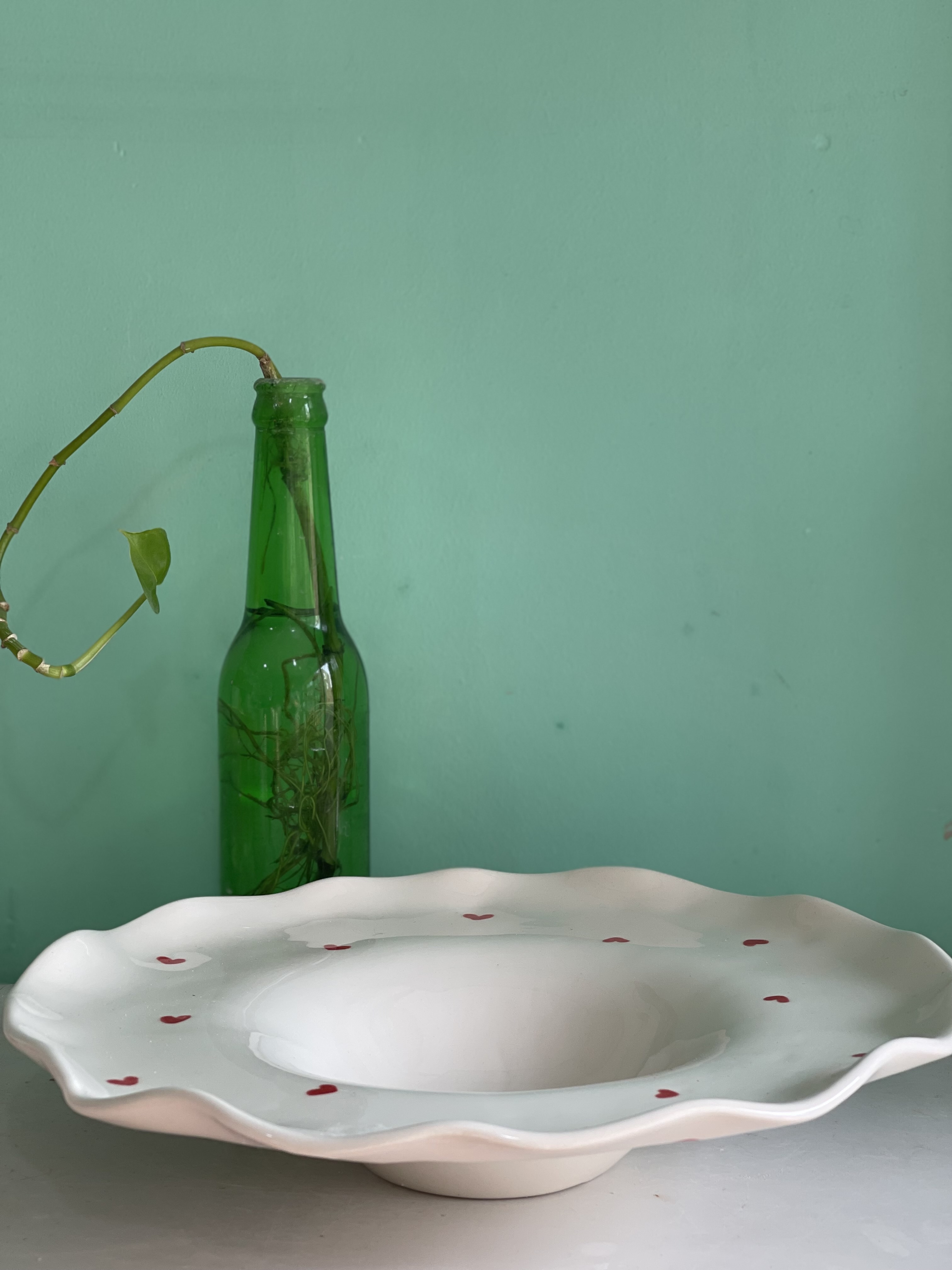 بشقاب پاستاخوری 31سانت لبه چین قلبی جنس سرامیک دستساز
