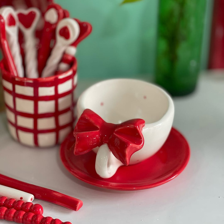 فنجان نعلبکی دسته پاپیون جنس سرامیک دستساز
