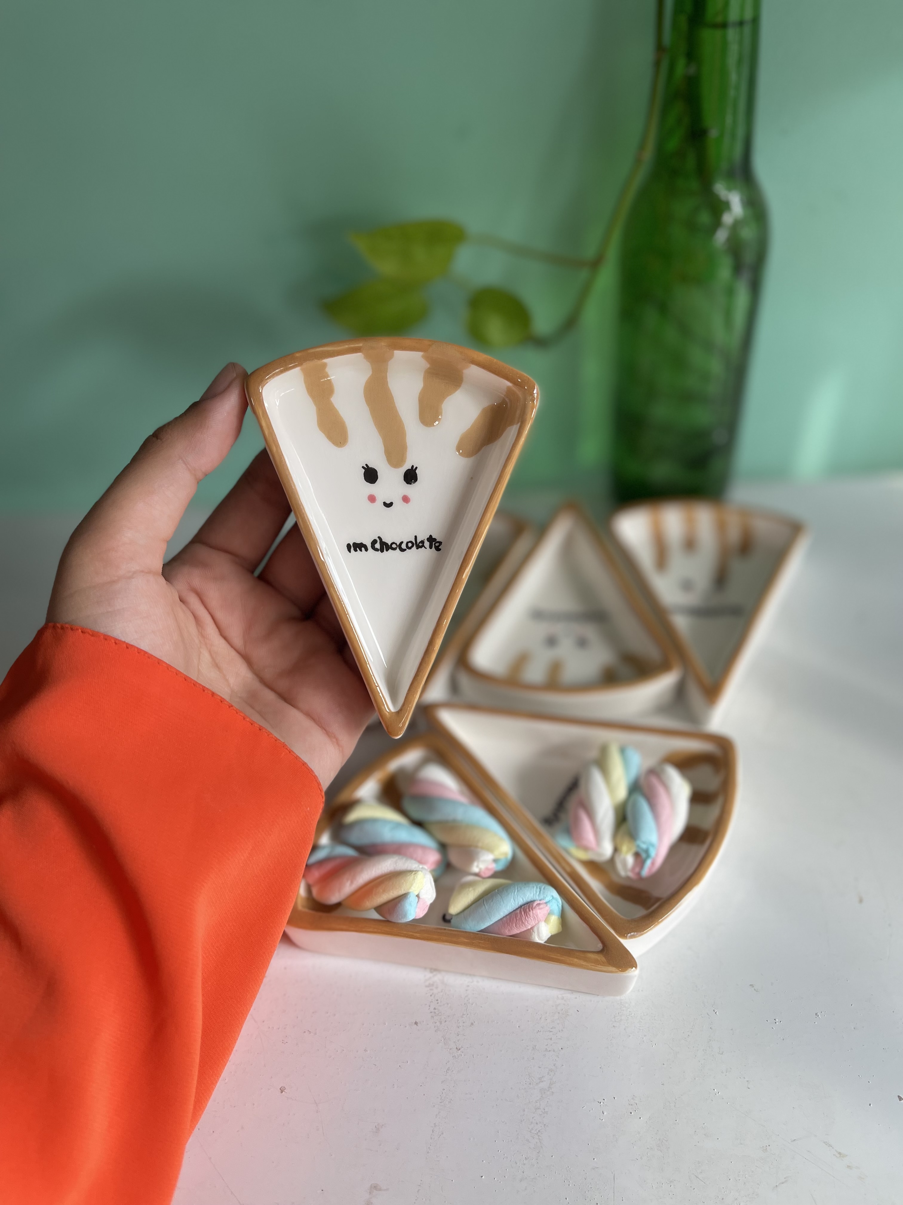 اردوخوری مثلثی شکلات جنس سرامیک دستساز پیاله