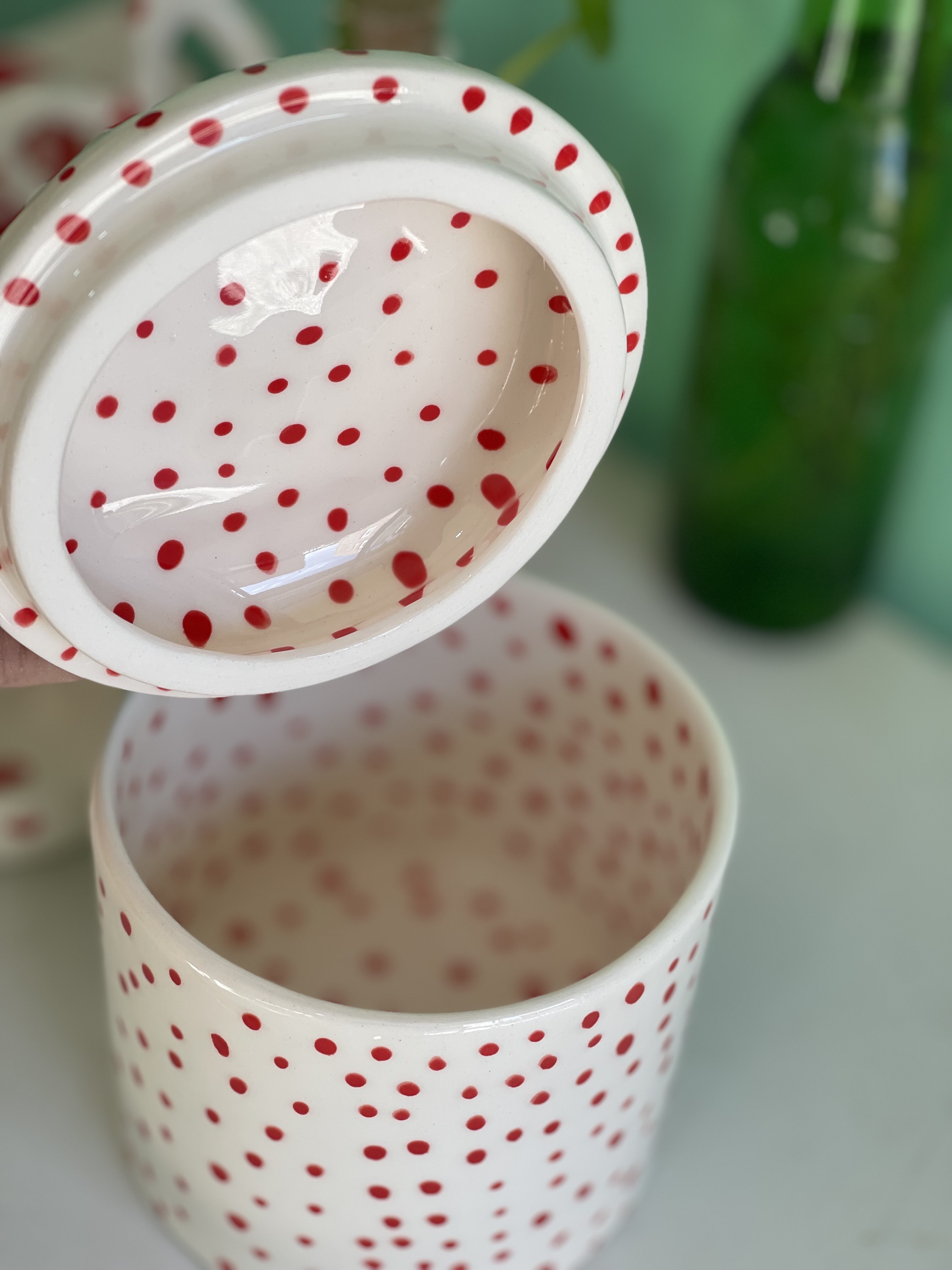 بانکه 12*10 خال خالی جنس سرامیک دستساز پاسماوری قندان