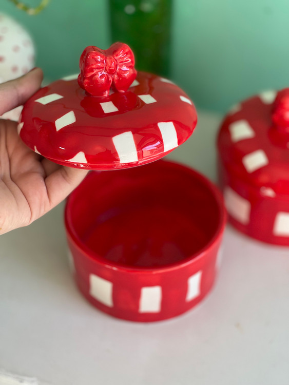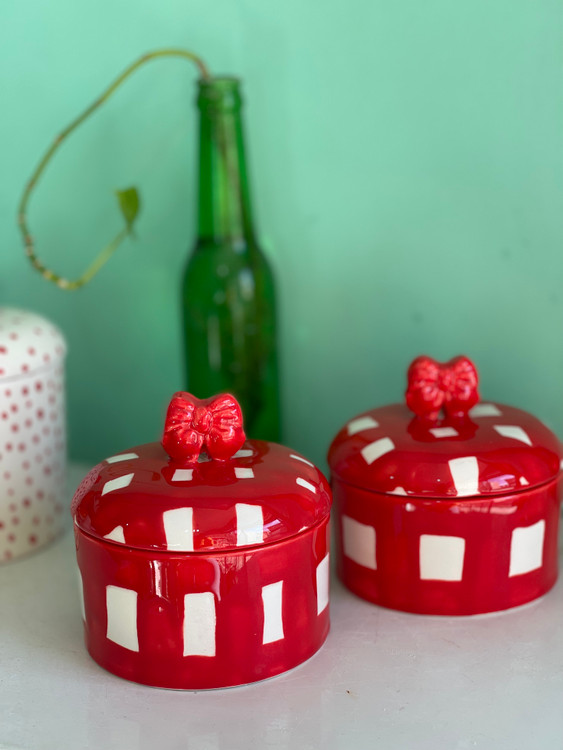 بانکه پاسماوری چهارخونه قرمز پاپیون قندان سرامیک دستساز