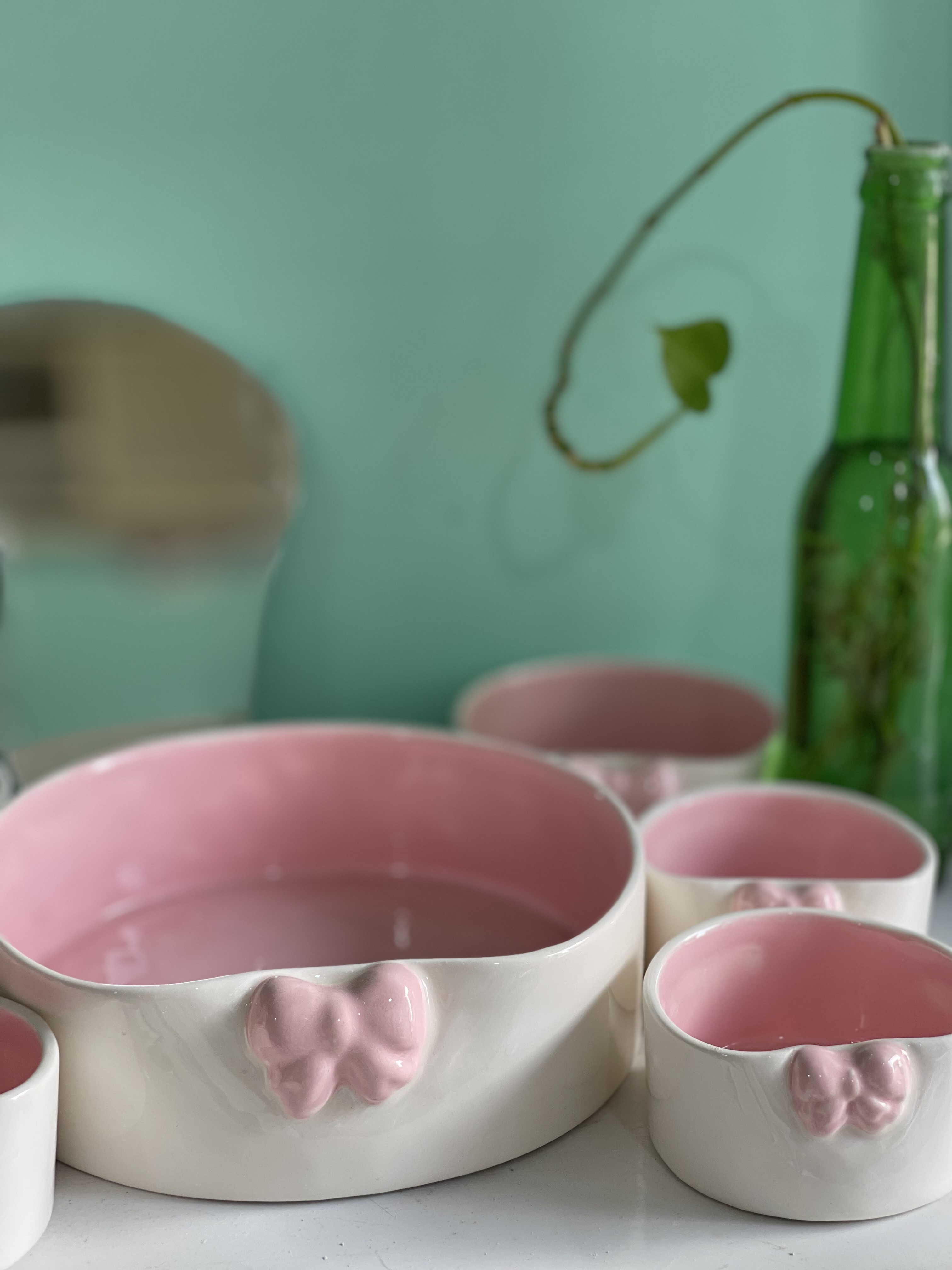 ست هفت سین هفتسین پاپیون صورتی جنس سرامیک دستساز