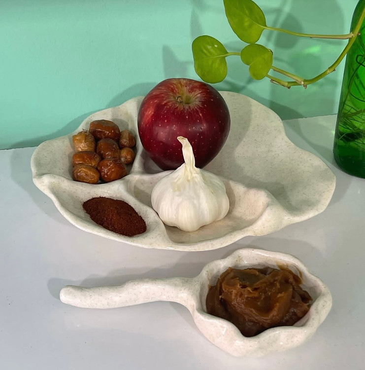 ست شامل یک عدد قاشق سرامیکی و یک عدد سینی میباشد