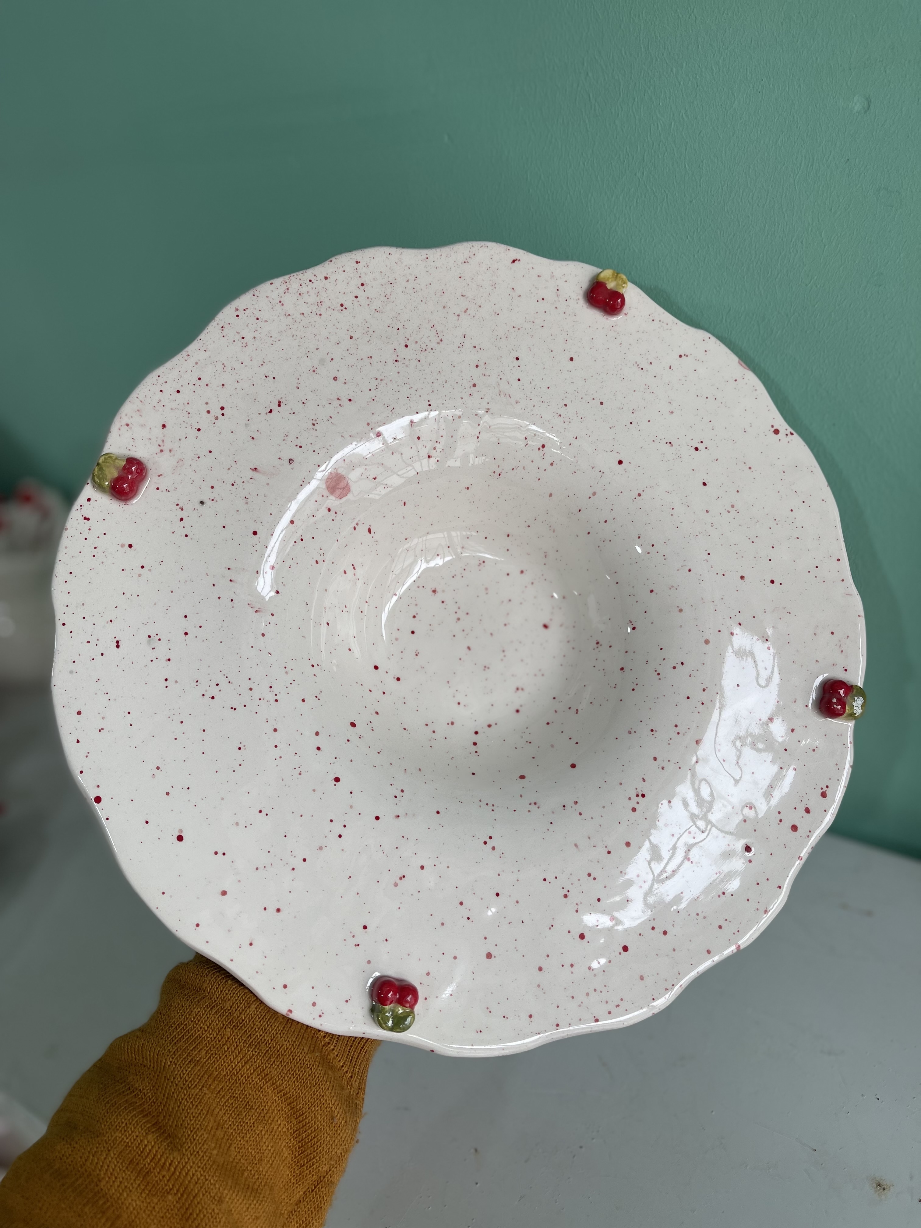 بشقاب پاستاخوری لبه چین گیلاس برجسته جنس سرامیک دستساز