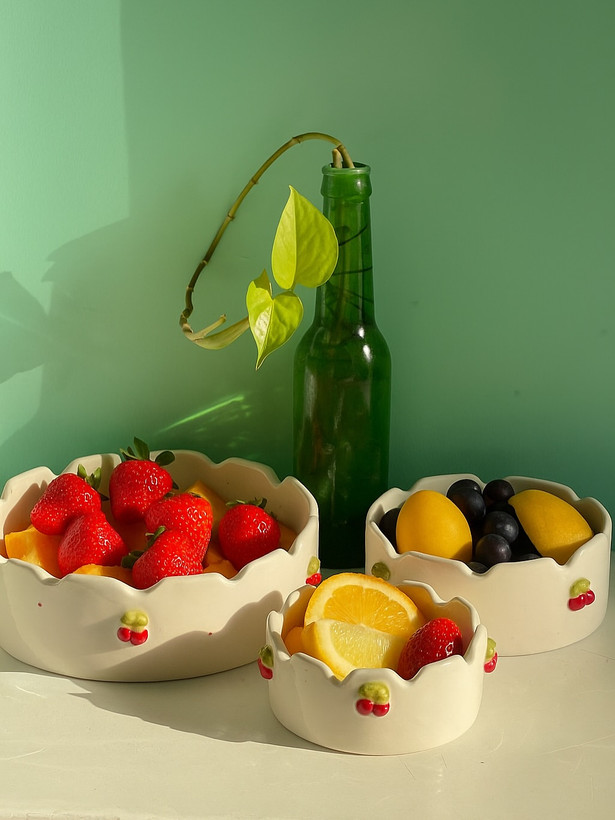 ست پذیرایی گیلاس برجسته ست کاسه ماگ 3سایز جنس سرامیک دستساز