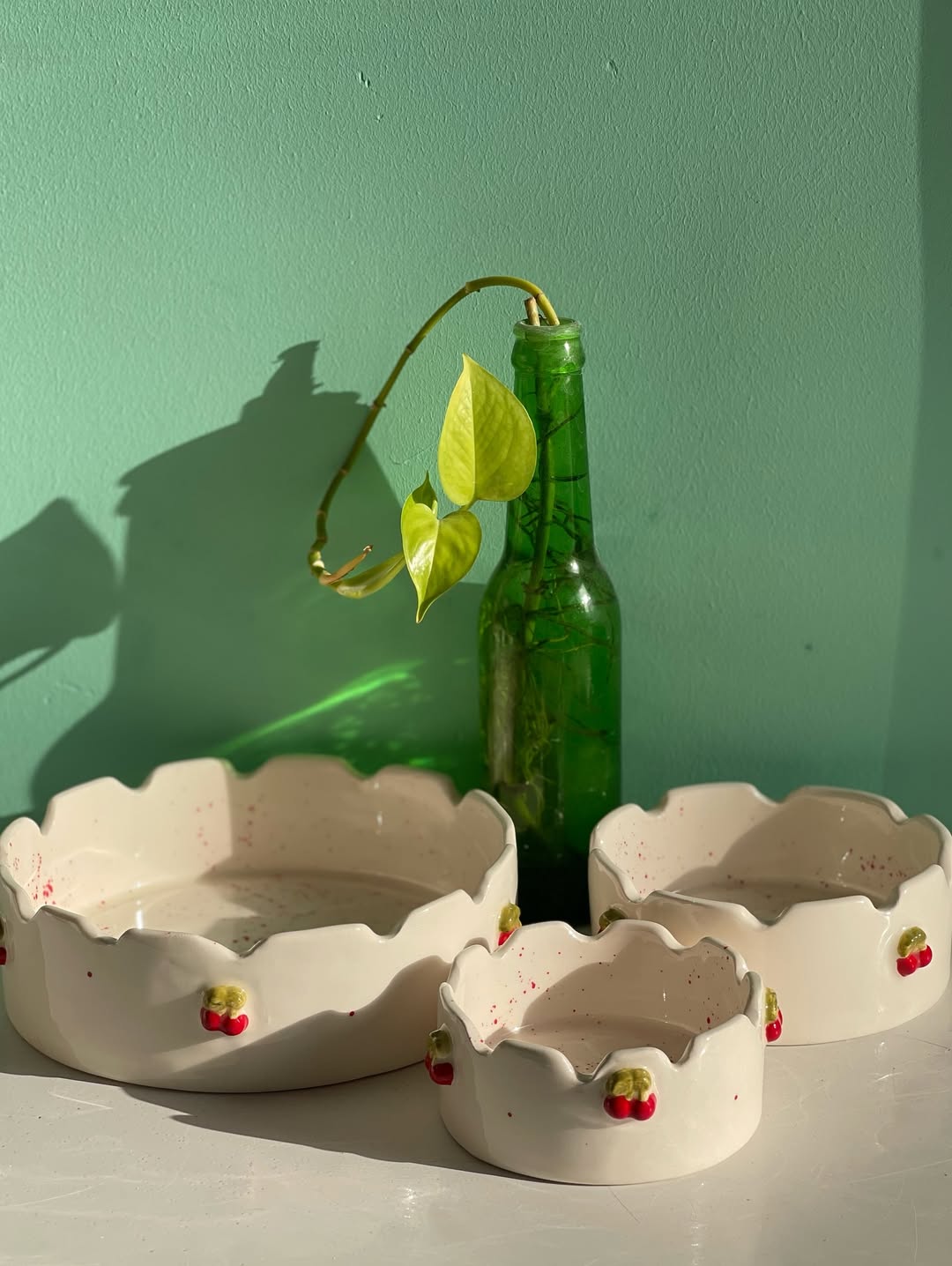 ست پذیرایی گیلاس برجسته ست کاسه ماگ 3سایز جنس سرامیک دستساز