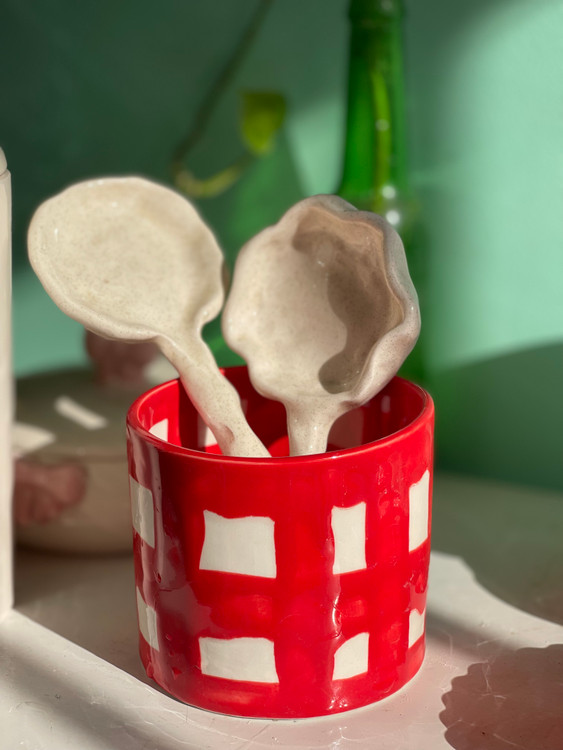 جاقاشقی 12سانت چهارخونه قرمز جنس سرامیک دستساز