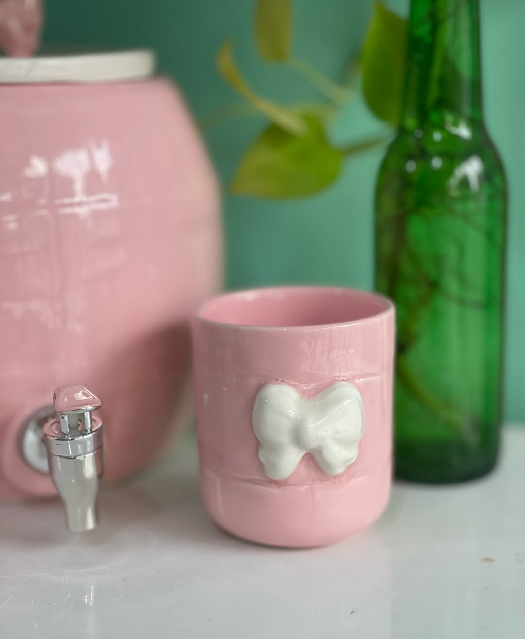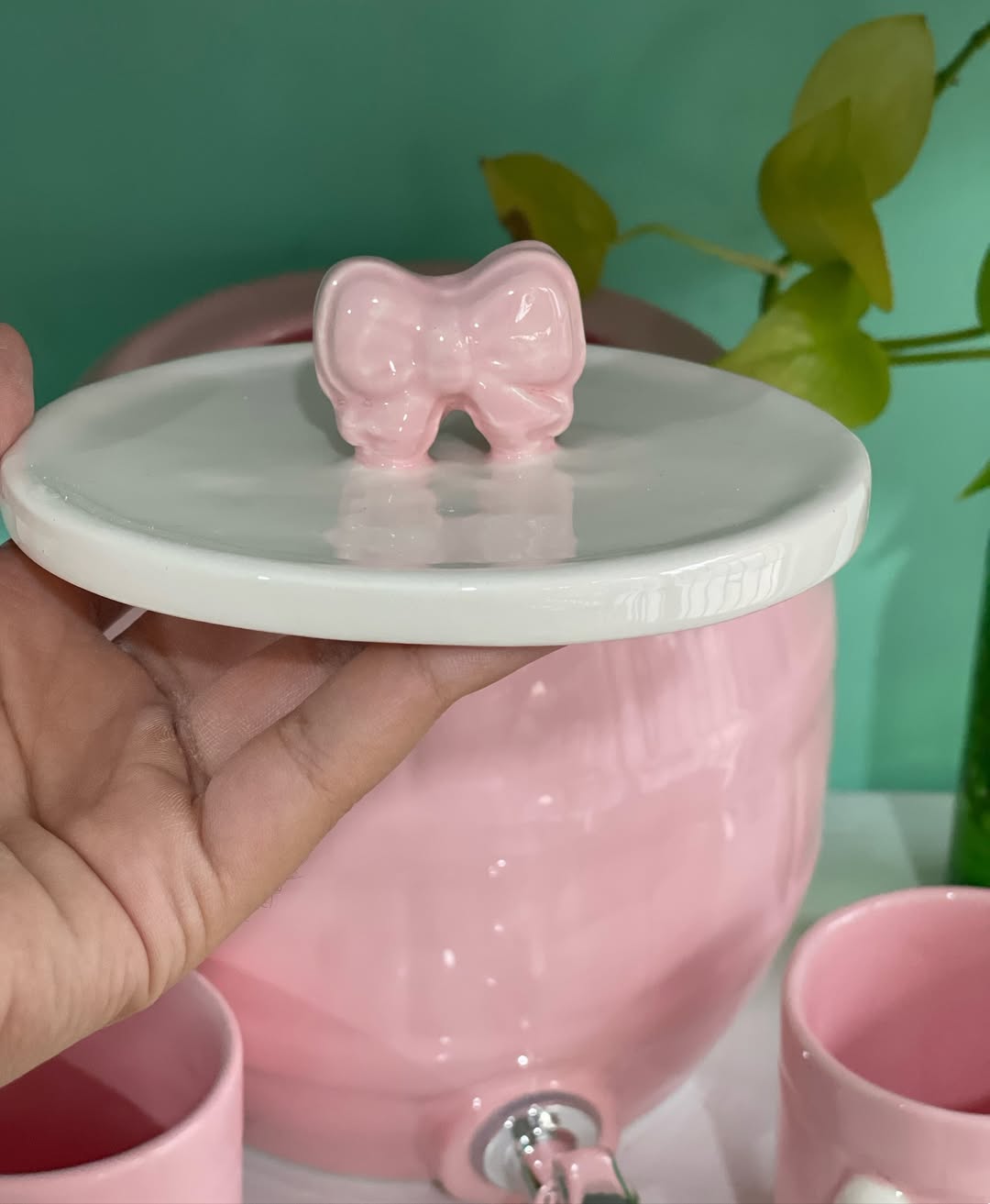 ست کلمن 4لیتر صورتی و لیوان آبخوری پاپیون جنس سرامیک دستساز