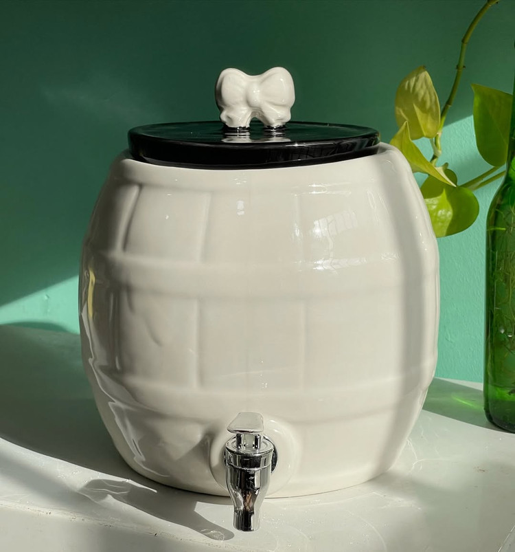 کلمن پاپیونی دستساز مناسب برای دورهمی هاتون گنجایش تقریباً 4لیتر جنس بدنه سرامیک پخت شده دو مرحله در دمای ۱۰۹۰ درجه