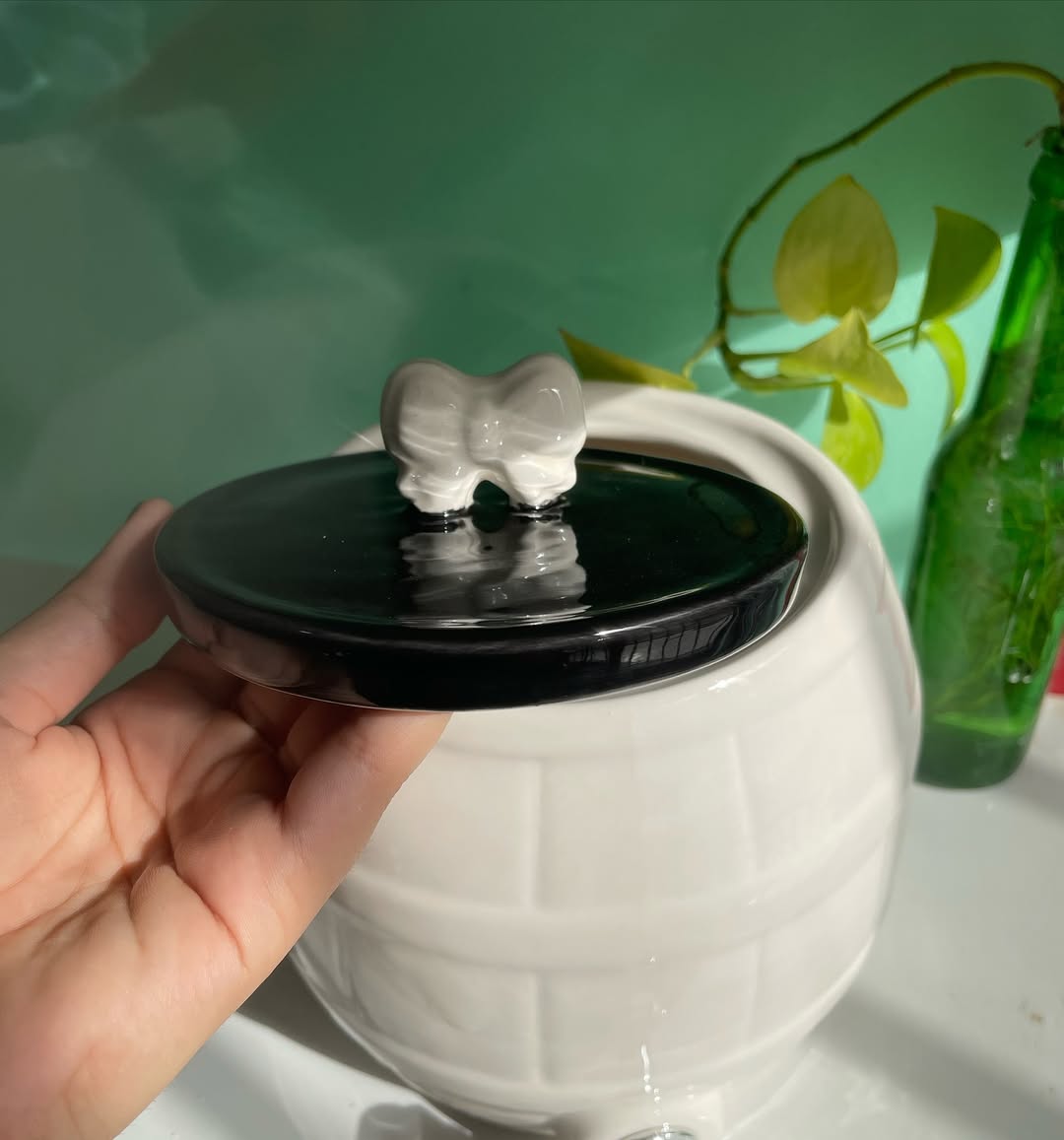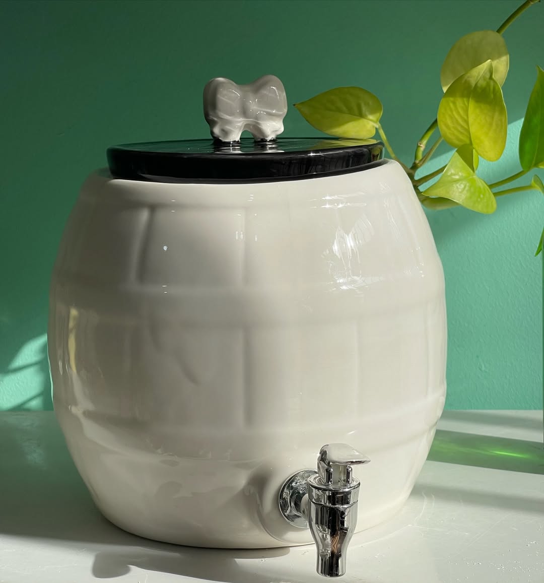 کلمن پاپیونی دستساز مناسب برای دورهمی هاتون گنجایش تقریباً 4لیتر جنس بدنه سرامیک پخت شده دو مرحله در دمای ۱۰۹۰ درجه