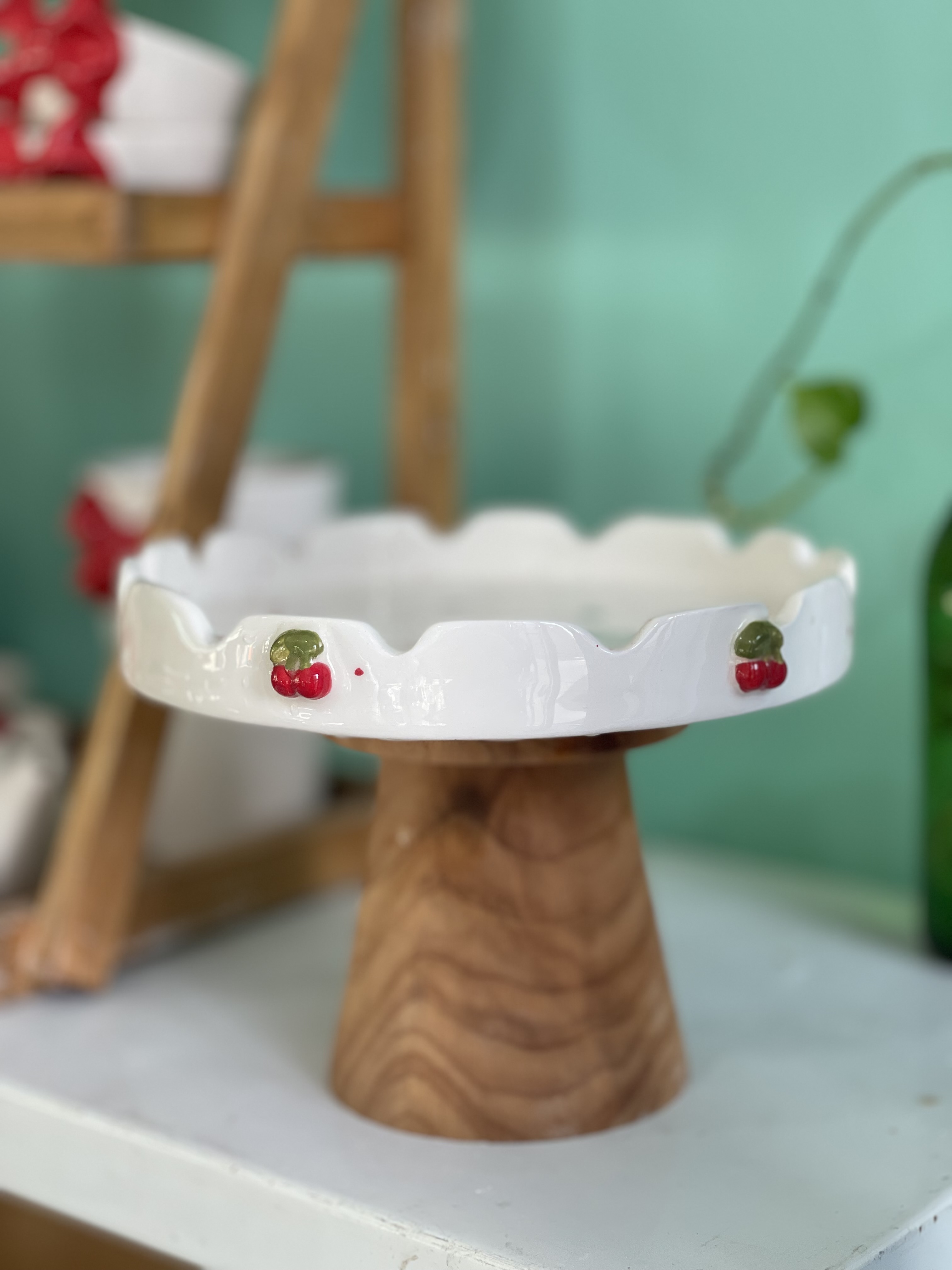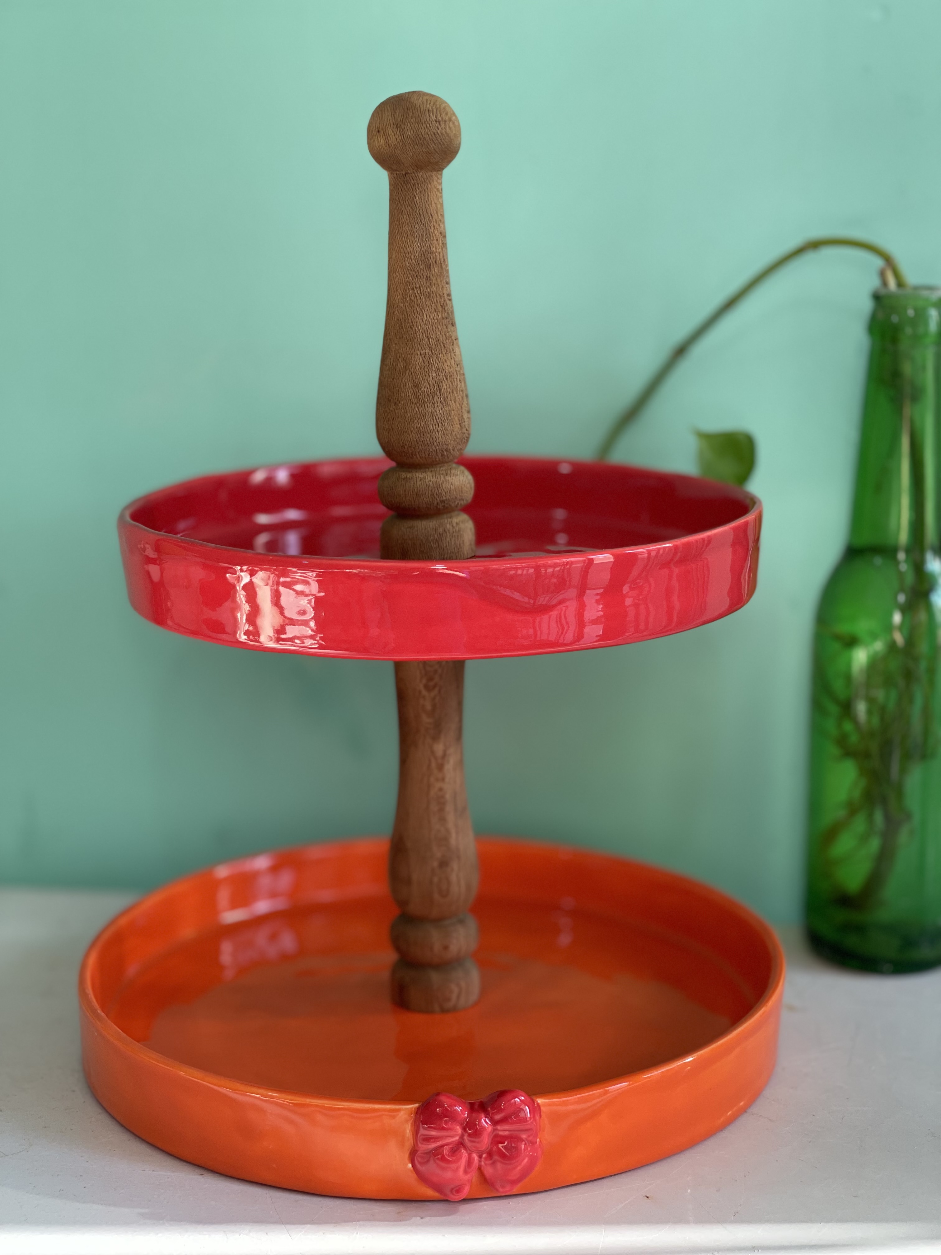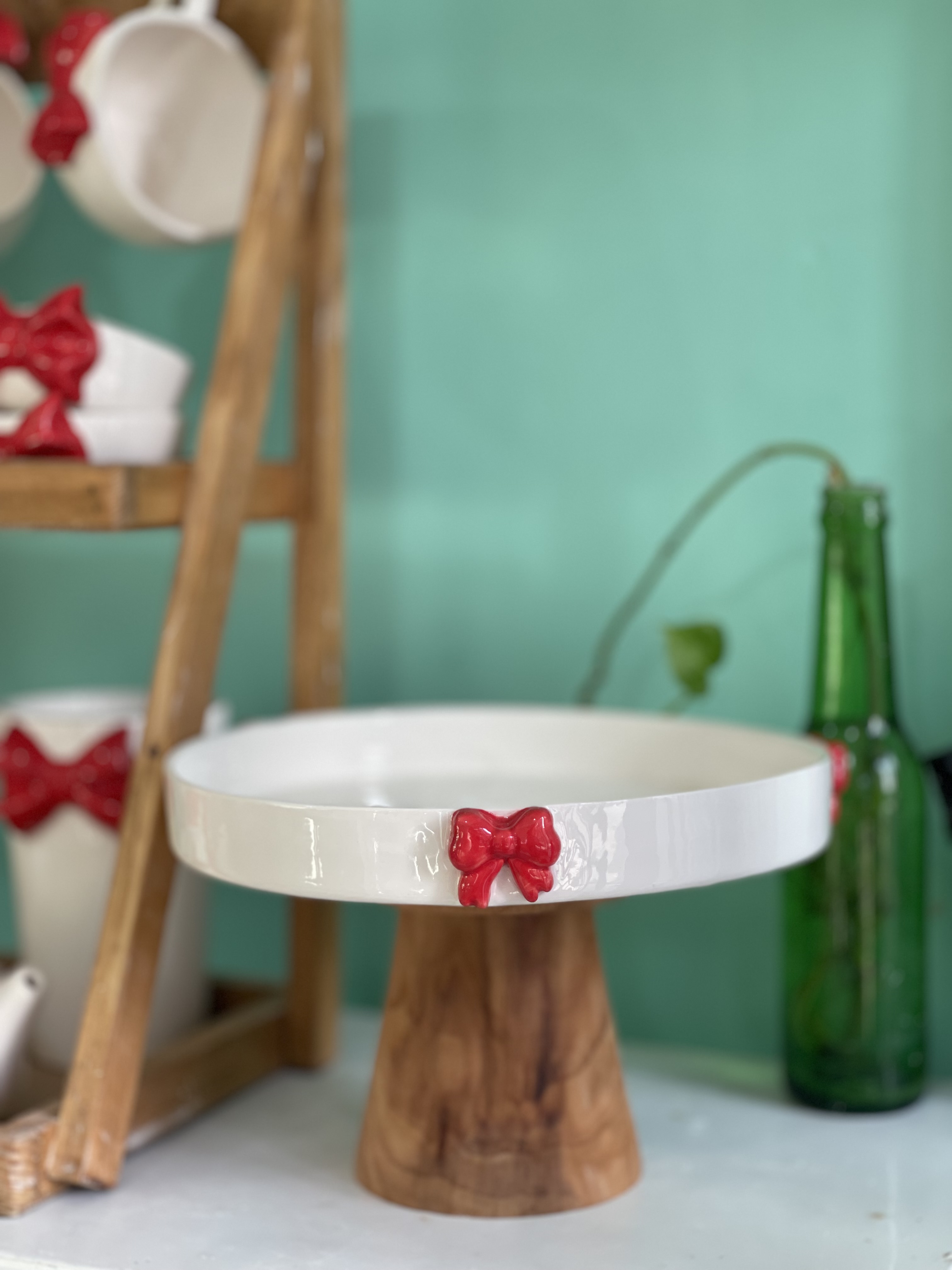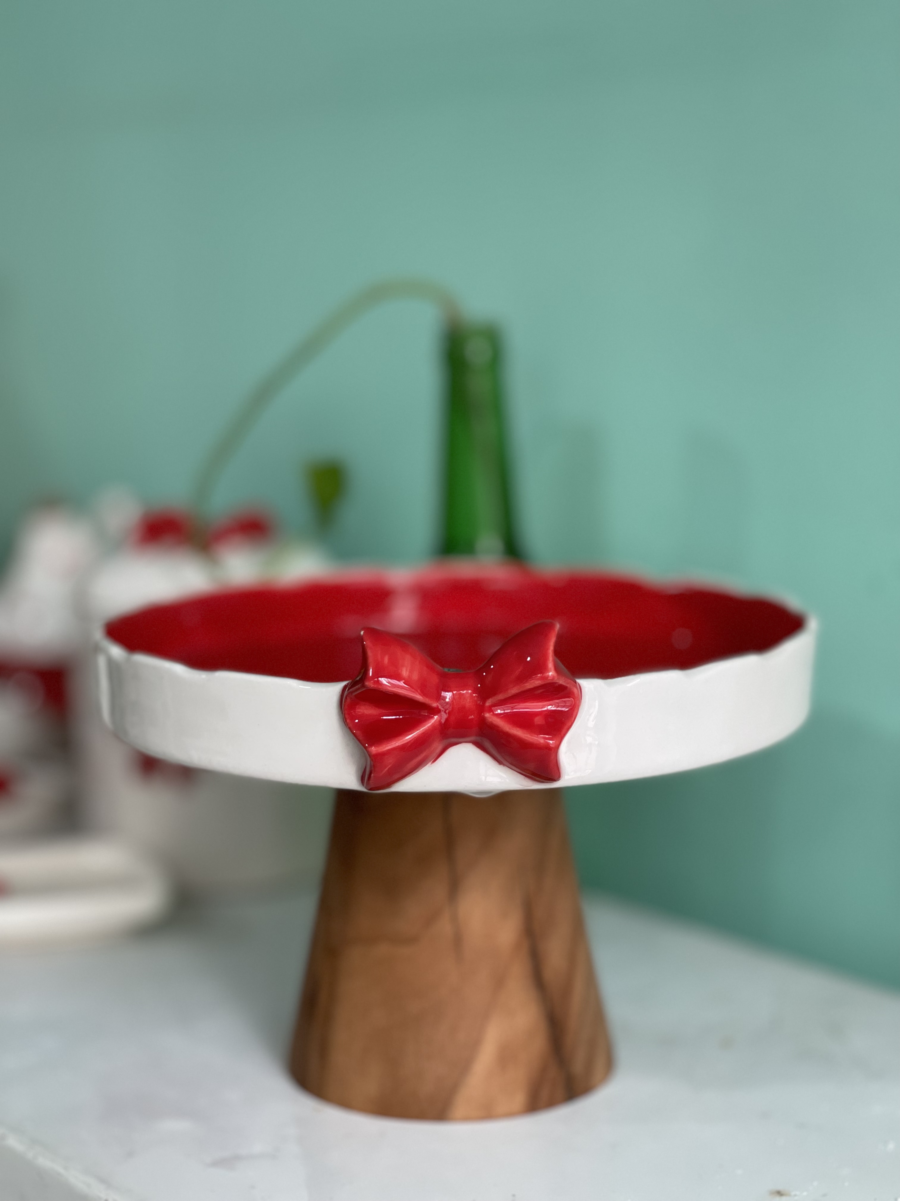 شیرینی خوری پایه چوبی پاپیون قرمز جنس سرامیک دستساز