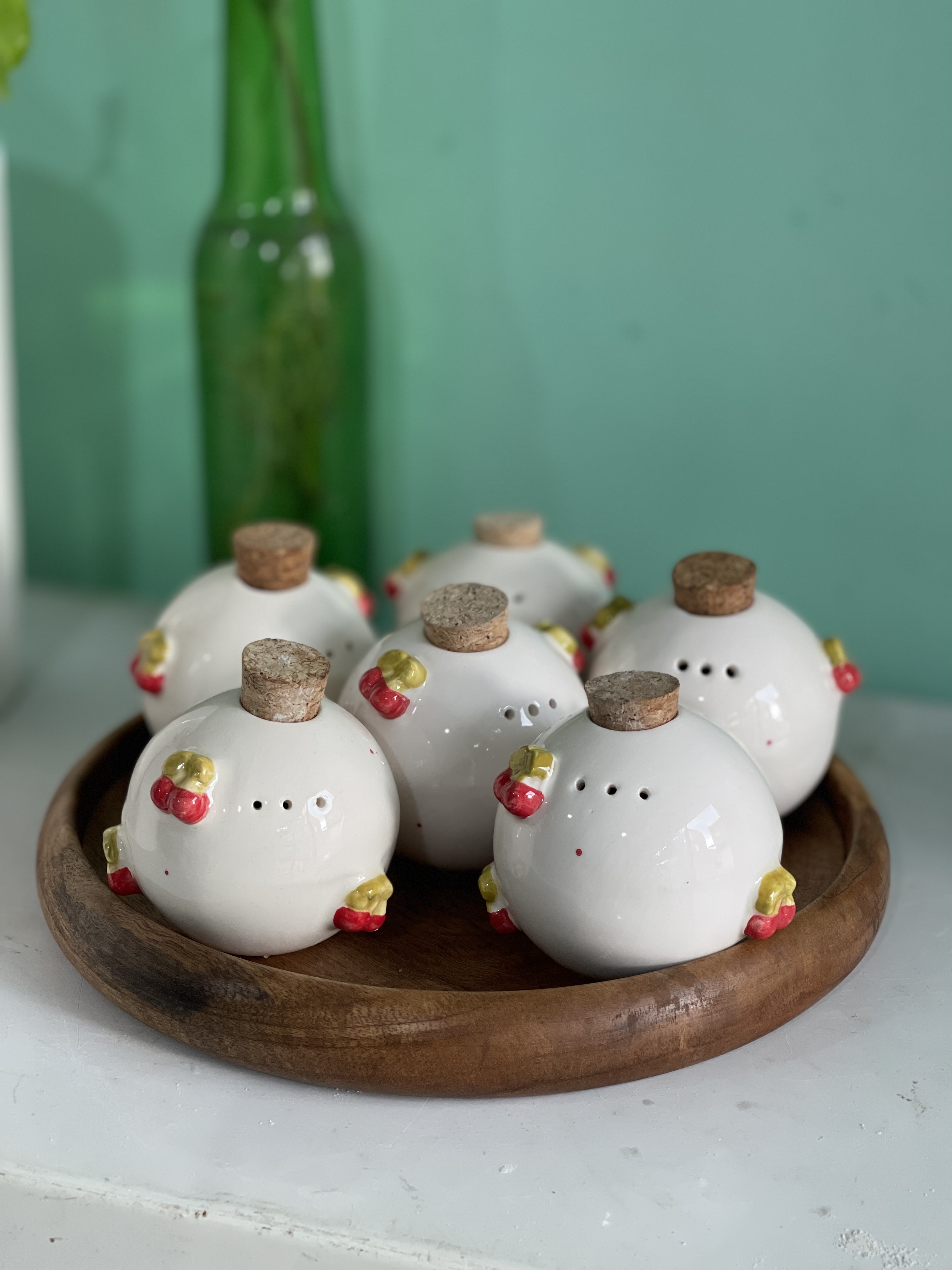 نمکدان نمکپاش گرد گیلاس برجسته سرامیک دستساز